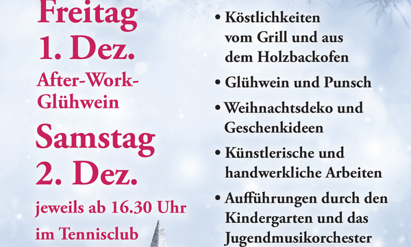 Am Freitag starten wir mit einem Afterwork-Glühwein-Treff, Köstlichkeiten vom Grill und aus dem Holzofen. Samstags genießen wir die vorweihnachtliche Stimmung auf unserer Anlage wie in den Jahren zuvor.